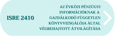 2023.03.16.Jelen menüpontban találhatók a jelenleg hatályos átvilágítási és egyéb bizonyosságot nyújtó szolgáltatási megbízásokra szóló (ISAE), valamint a kapcsolódó szolgáltatásokra vonatkozó (ISRS) standardok, valamint ezeknek a kamara elnöksége által elfogadott és a Könyvvizsgálói Közfelügyeleti Hatóság által jóváhagyott, ezt követően bekövetkező módosításai.
